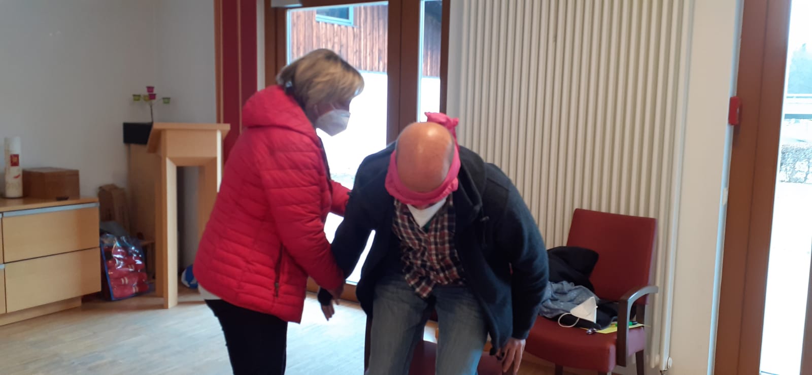Für uns Pflege- und Betreuungskräfte ist es daher wichtig, die Lebens- und Erlebenswelt demenzkranker Menschen soweit es geht zu verstehen und einschätzen zu können. Nur so kann es uns gelingen, ihren Bedürfnissen besser gerecht zu werden. In einem Tagesworkshop im Chiemgau-Stift haben wir diese Dinge trainiert. Dabei ging es um mehr als nur um Wissensvermittlung. Die Teilnehmer sollten am eigenen Leib erfahren, wie man sich in solchen Situationen fühlt und wie es ist, wenn man sich mit eingeschränkten Sinnen zurechtfinden muss.