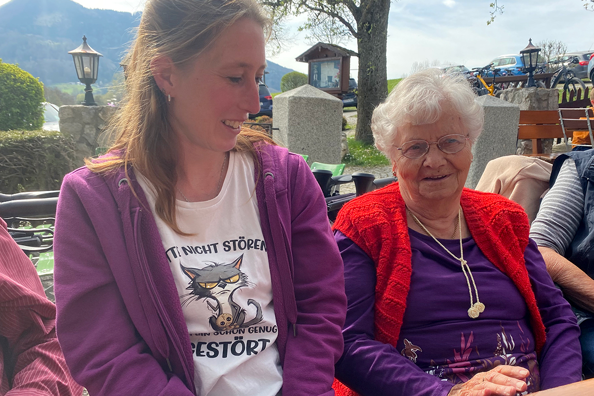 Schließlich machten sich sieben Bewohner, darunter zwei Rollstuhlfahrer und vier Betreuungsassistenten, gleich nach dem Mittagessen um 13 Uhr auf den Weg nach Aschau im Chiemgau. Bereits um 14 Uhr begann die Führung, die eine ganze Stunde dauerte, Nach einer anschließenden ausgiebigen persönlichen Inaugenscheinnahme führte der Weg noch in ein Café, ehe alle pünktlich zum Abendessen um 18 Uhr wieder ins Chiemgau-Stift zurückkehrten.